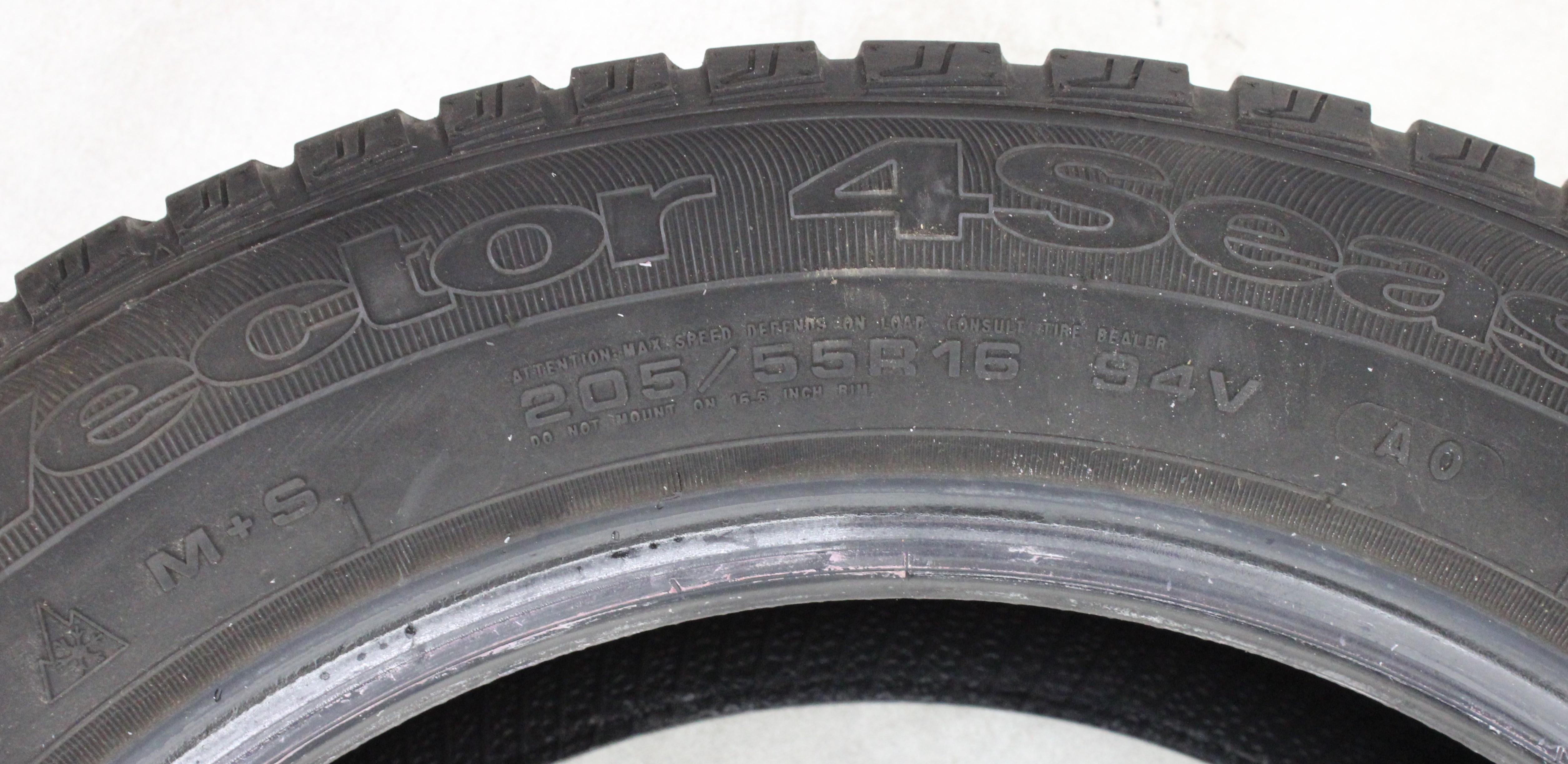 2 x 205/55R16 94V Ganzjahresreifen Goodyear Vector 4 Seasons AO in der Mitte 5,5-6mm und auf den Scultern 5mm. 2013/2014