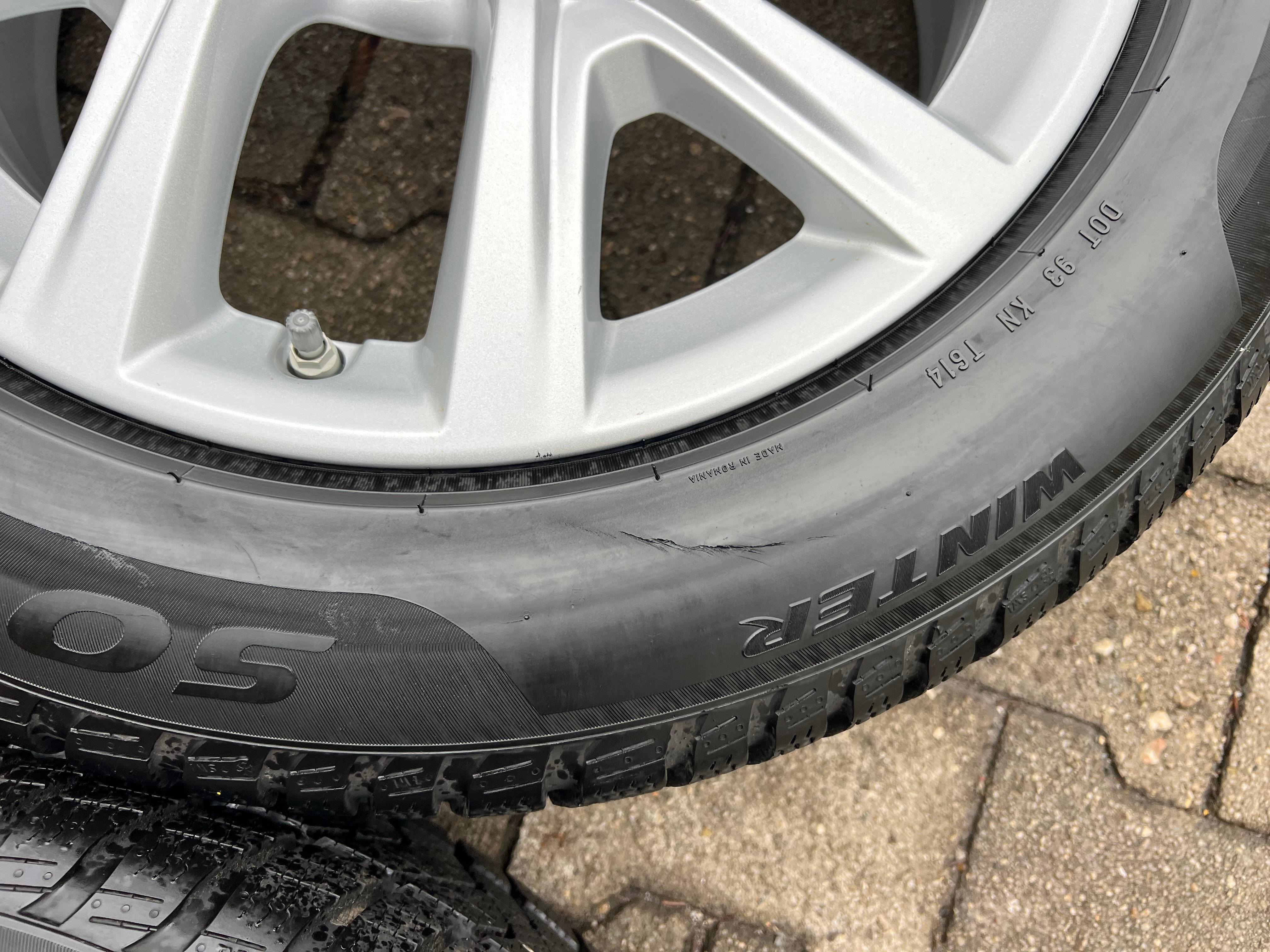 | Bemerkung | Ein Reifen hat eine oberflächliche Abschürfung. (siehe Bild) |