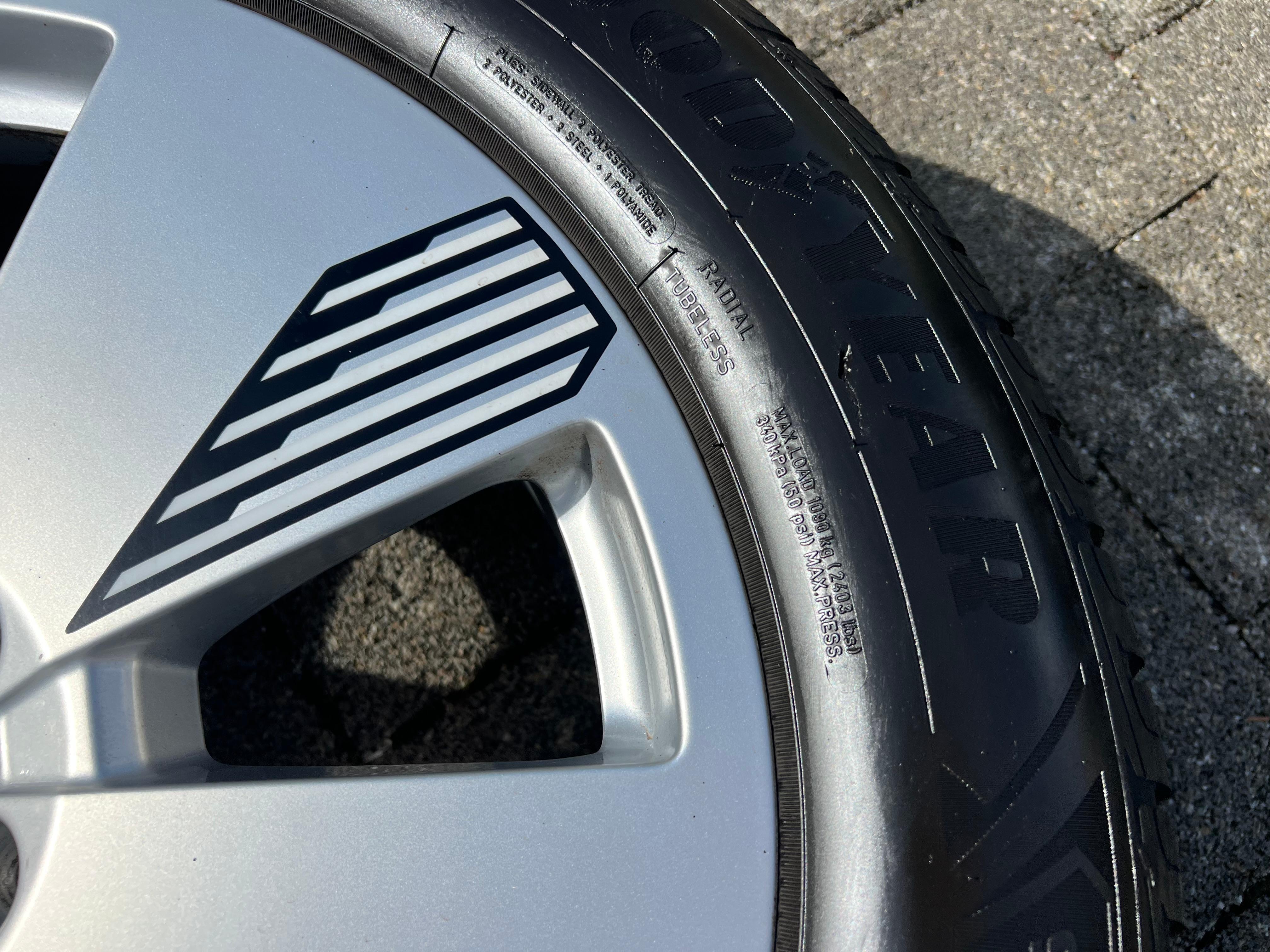 | Bemerkung | Zwei Reifen hat eine oberflächliche Abschürfung an der Seitenwand. (siehe Bild) |