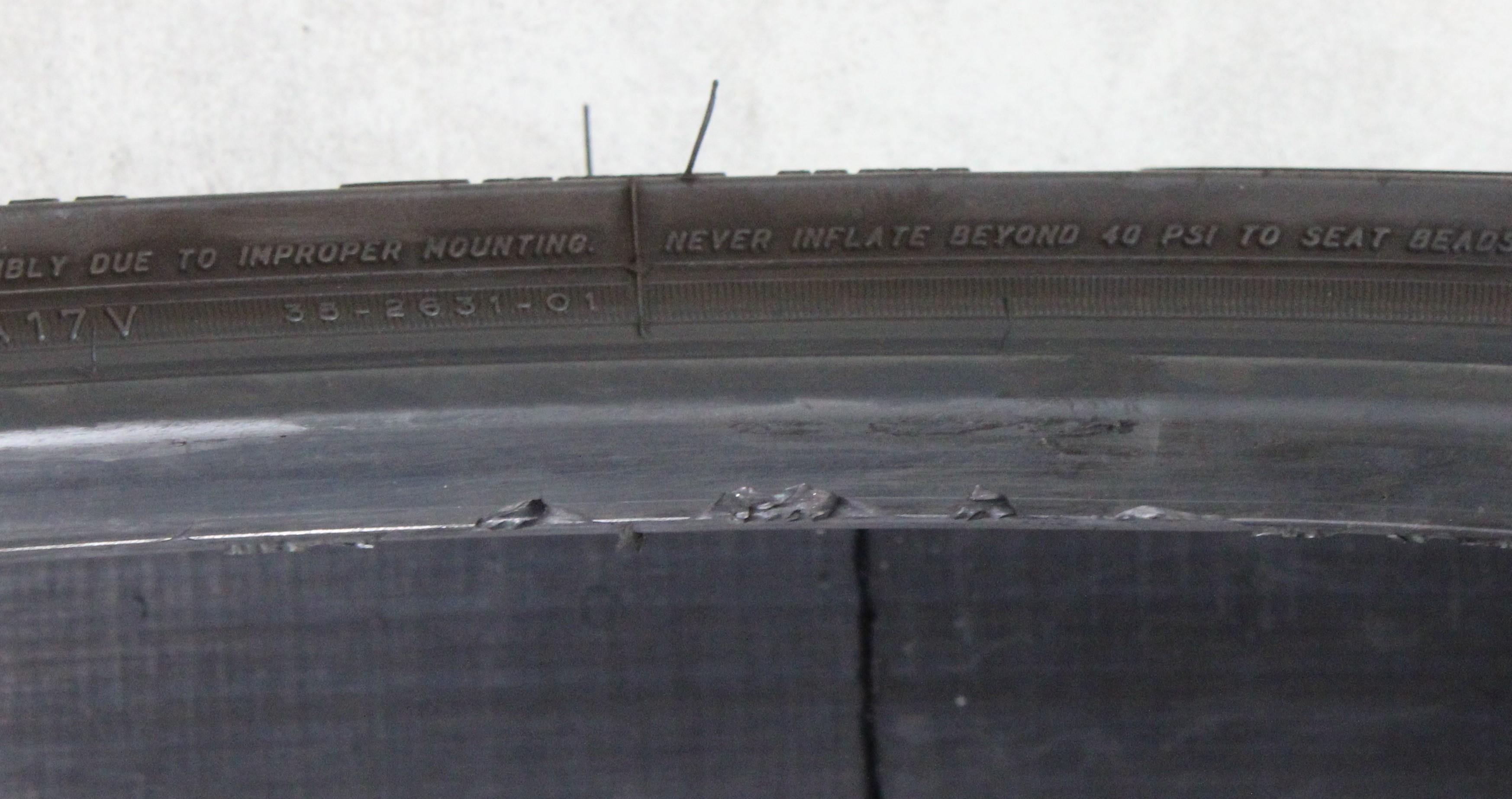 Bemerkung Ein Reifen hat eine kleine Abschürfung an der Wulst. (siehe Bild) Ein Reifen hat eine kleine Abschürfung an der Wulst. (siehe Bild)