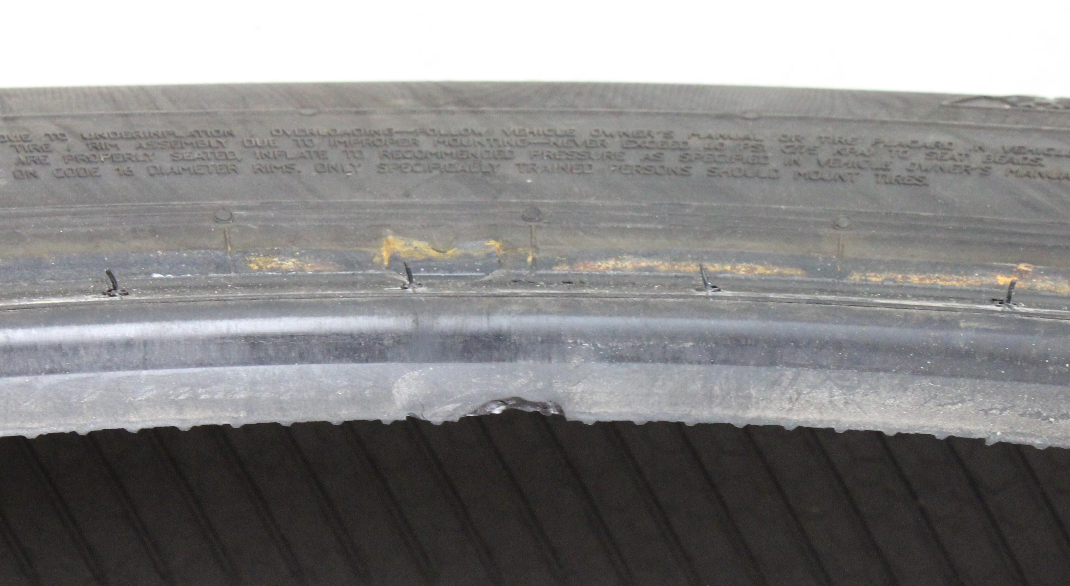 | Bemerkung | Ein Reifen hat eine kleine Abschürfung an der Wulst. (siehe Bild) |