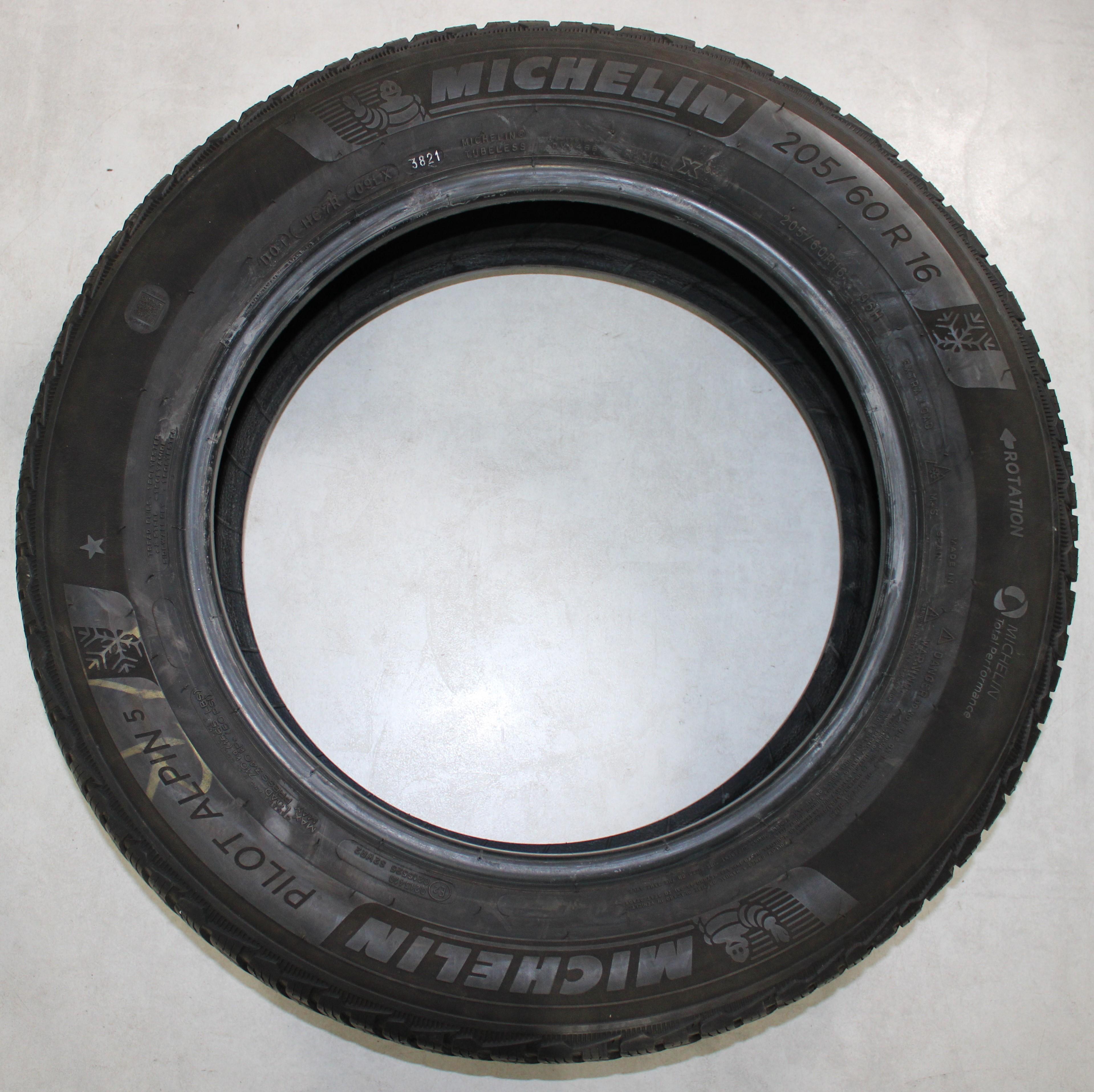 2 x 205/60R16 96H Winterreifen Michelin Pilot Alpin 5 in der Mitte 5,5mm und auf den Schultern 4,5-5mm. 2021 *