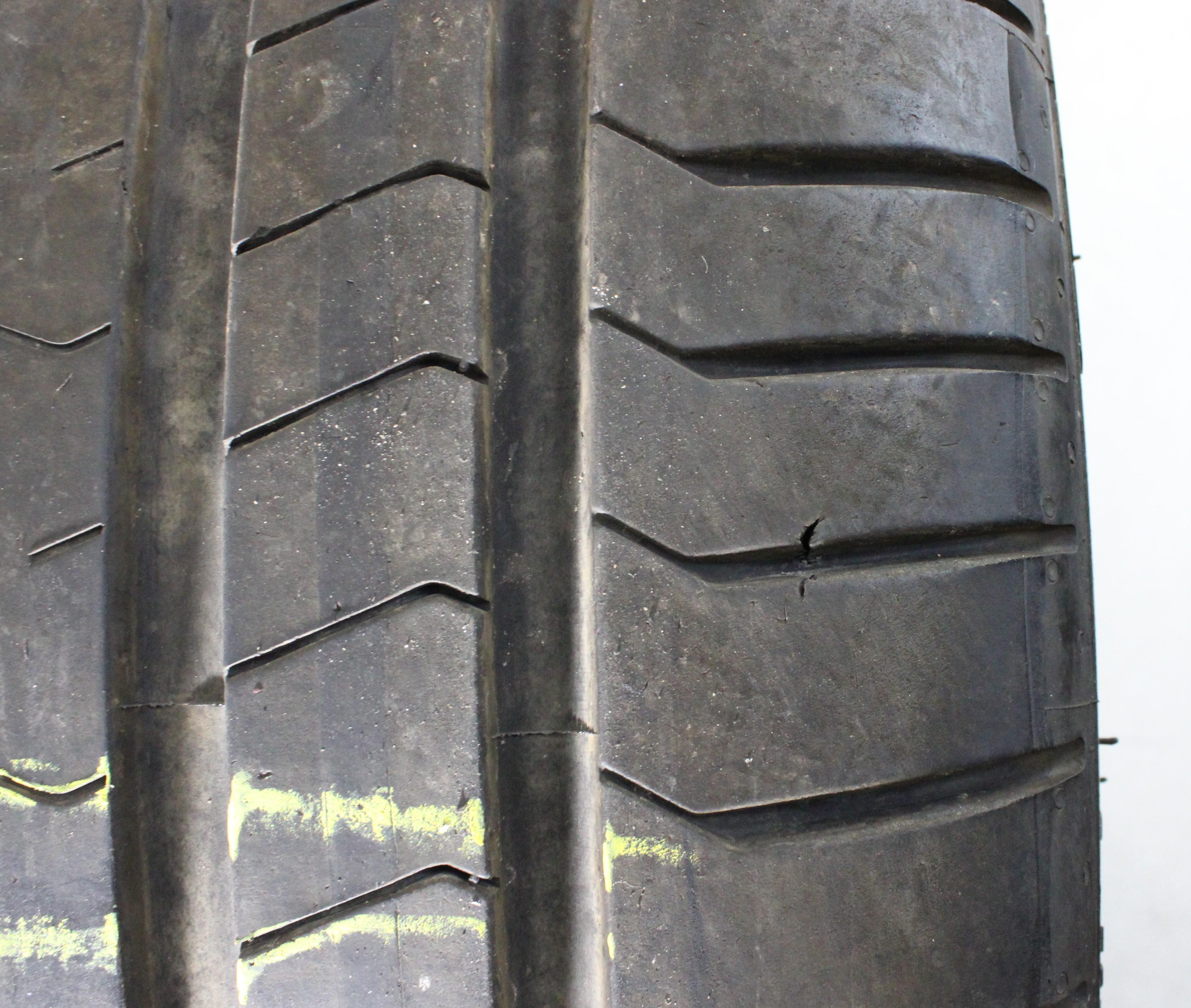 | Bemerkung | Ein Reifen hat eine Abschürfung an der Felgenschutzleiste und im Profil. (siehe Bild) |