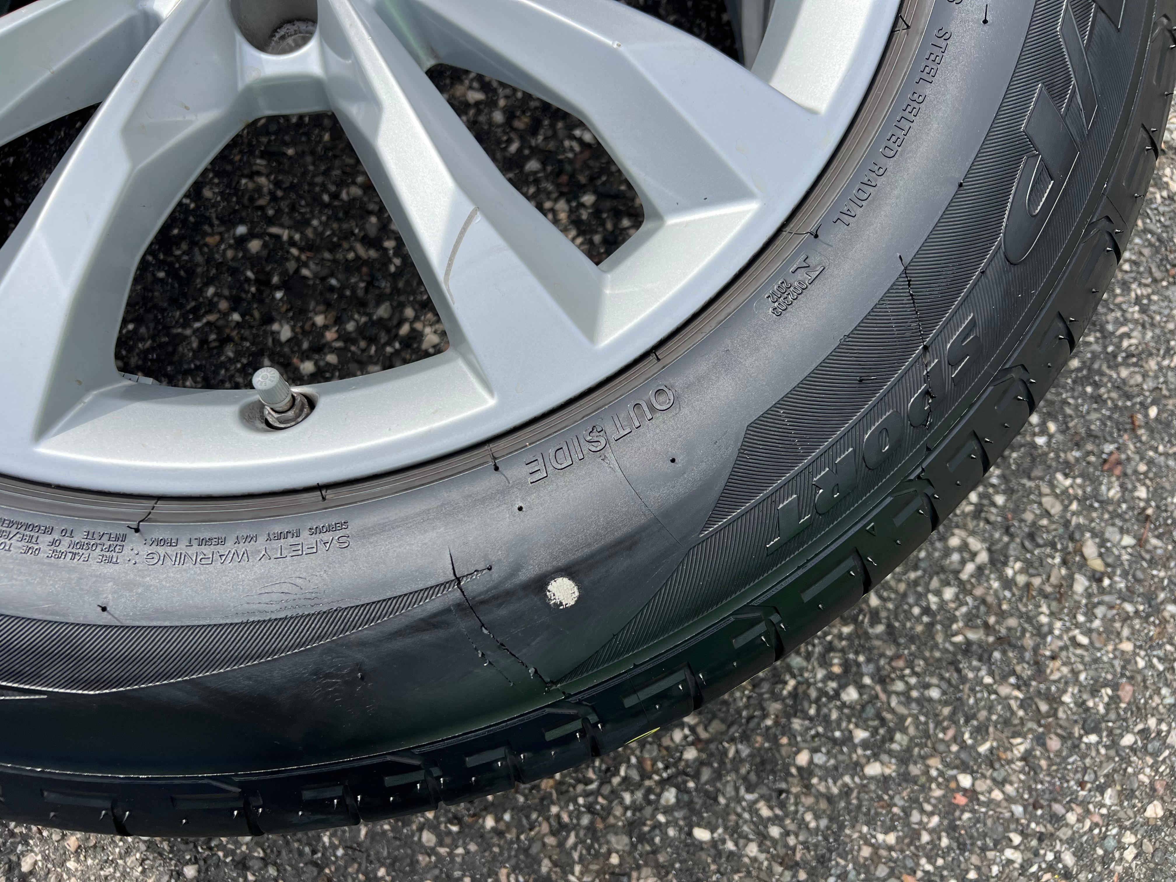 Bemerkung Ein Reifen hat eine Beschädigung an der Seitenwand. (siehe Bild)