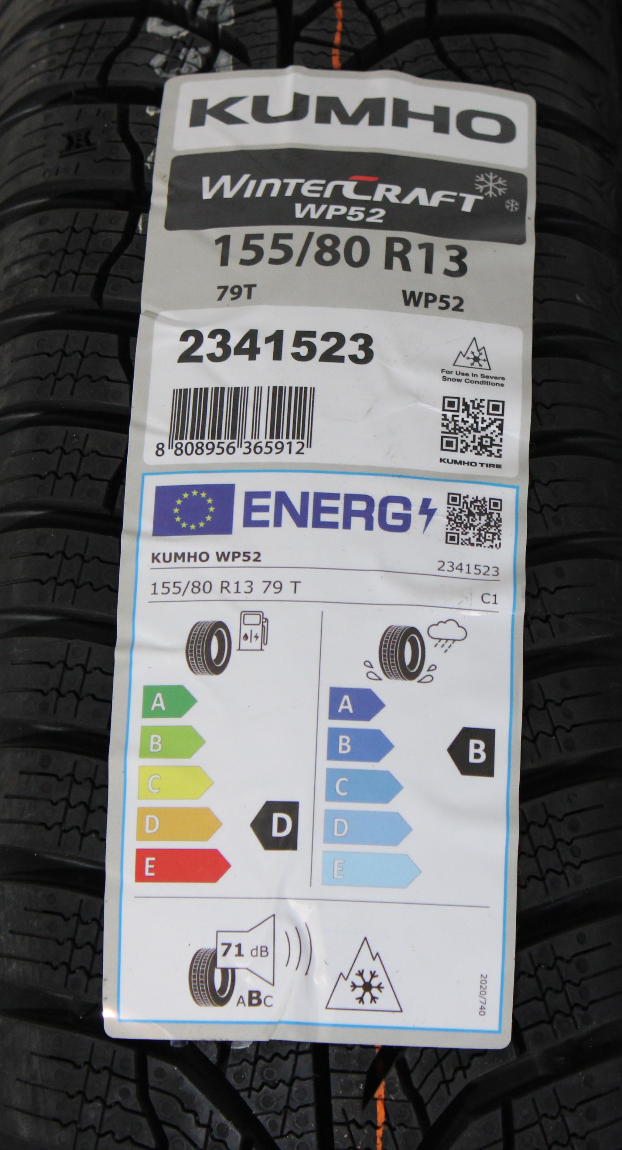 4 x 155/80R13 79T Winterreifen Kumho Wintercraft WP52 2024 NEU Freihaus