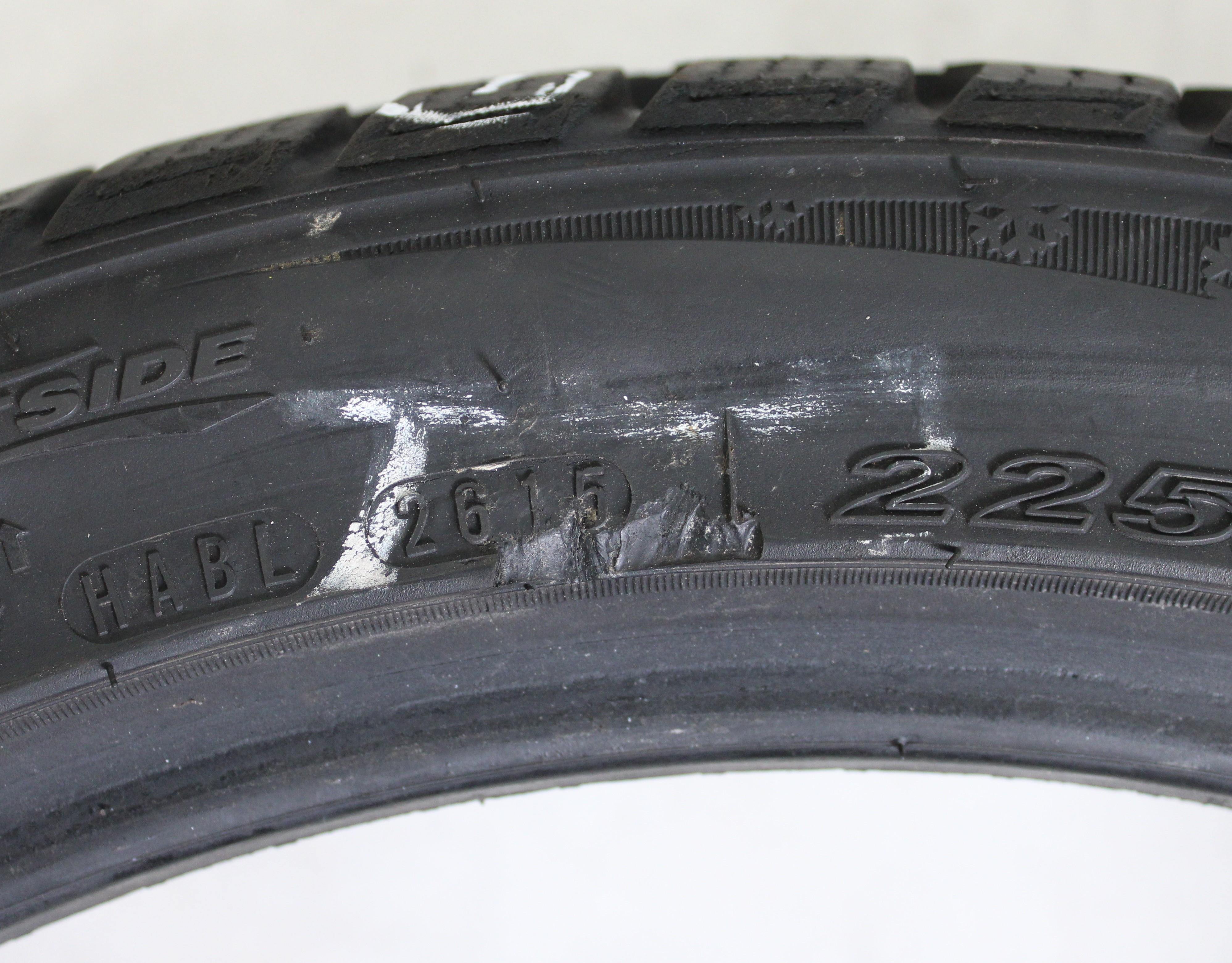 | Bemerkung | Zwei Reifen haben Abschürfungen an der Felgenschutzleiste. Ein Reifen hat eine kleine Abschürfung an der Wulst. (siehe Bild) |