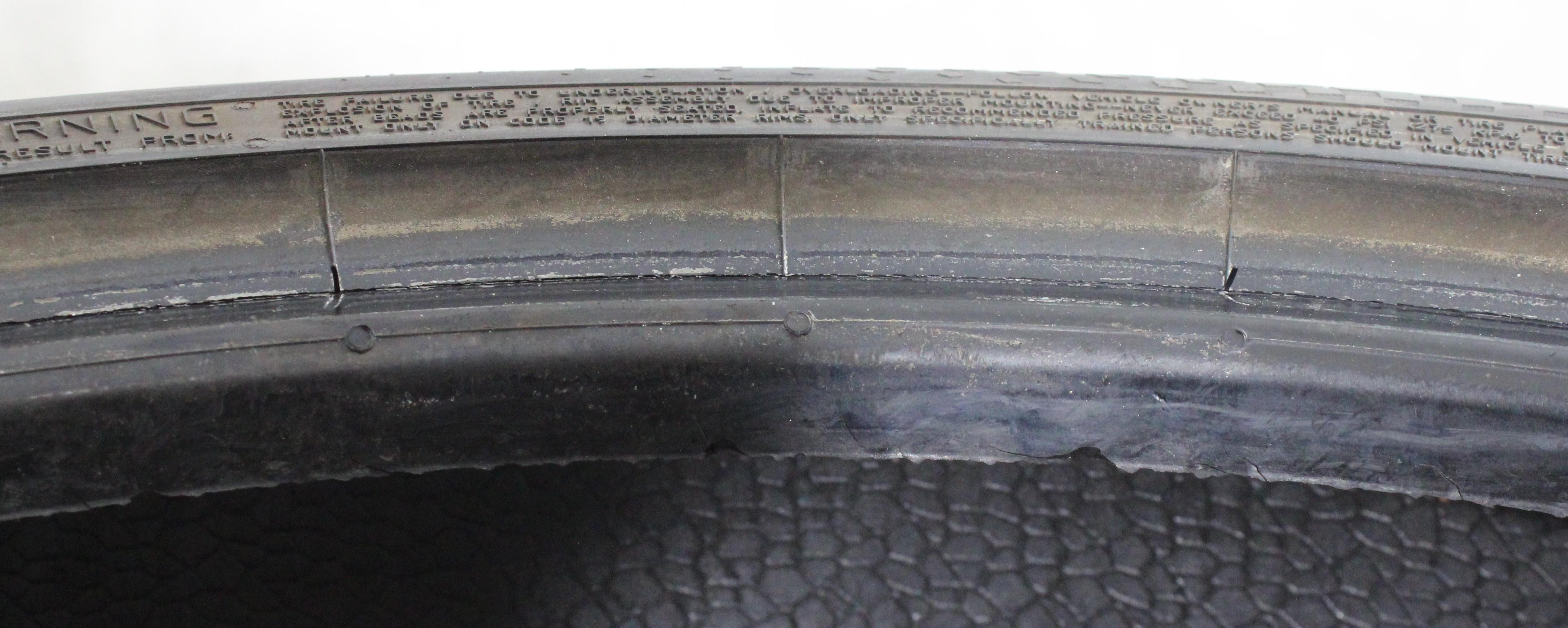 Bemerkung Der Reifen hat eine Abschürfung an der Felgenschutzleiste und im Profil. (siehe Bild)