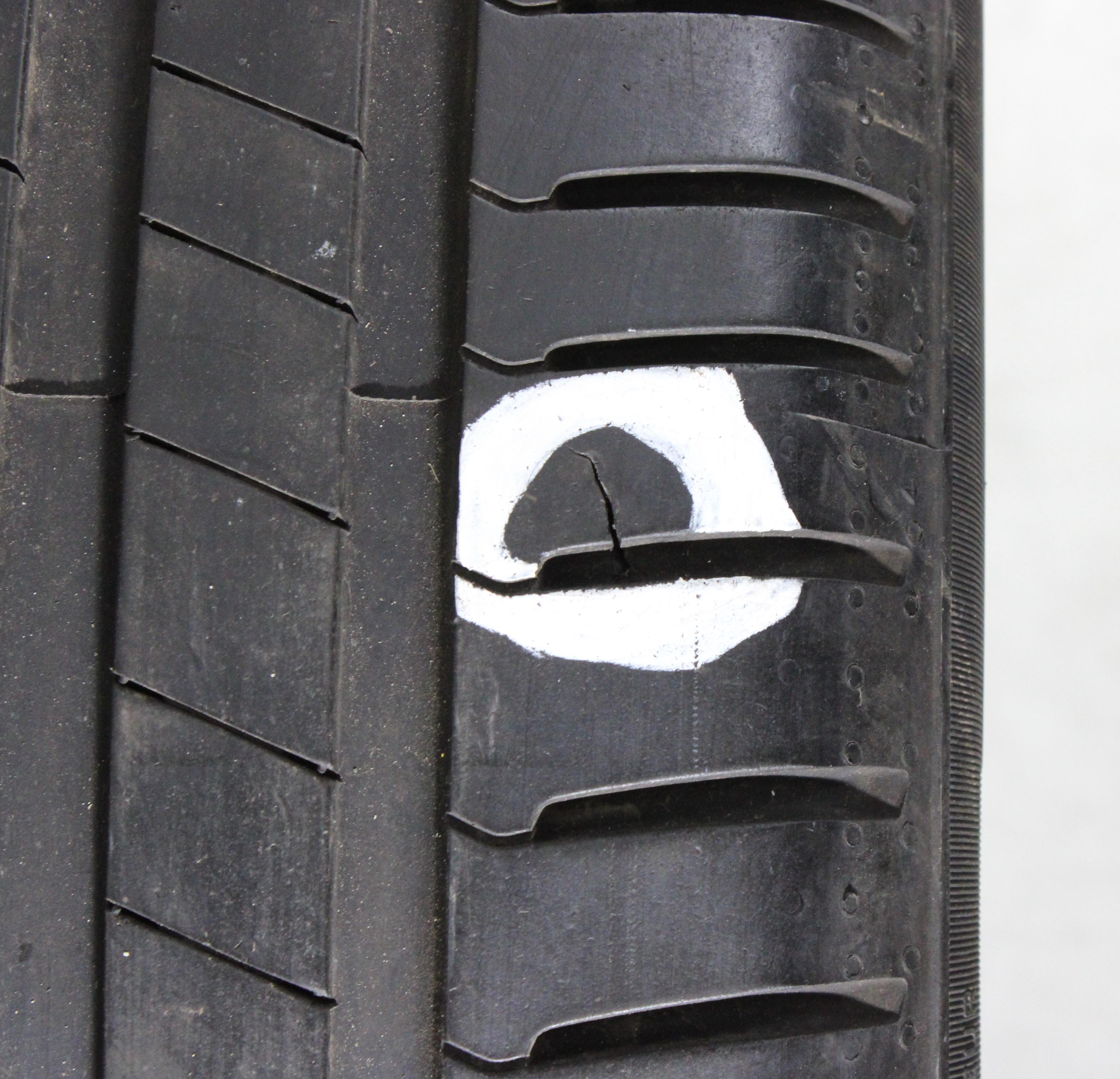 Bemerkung Ein Reifen hat eine Abschürfung im Profil. (siehe Bild)