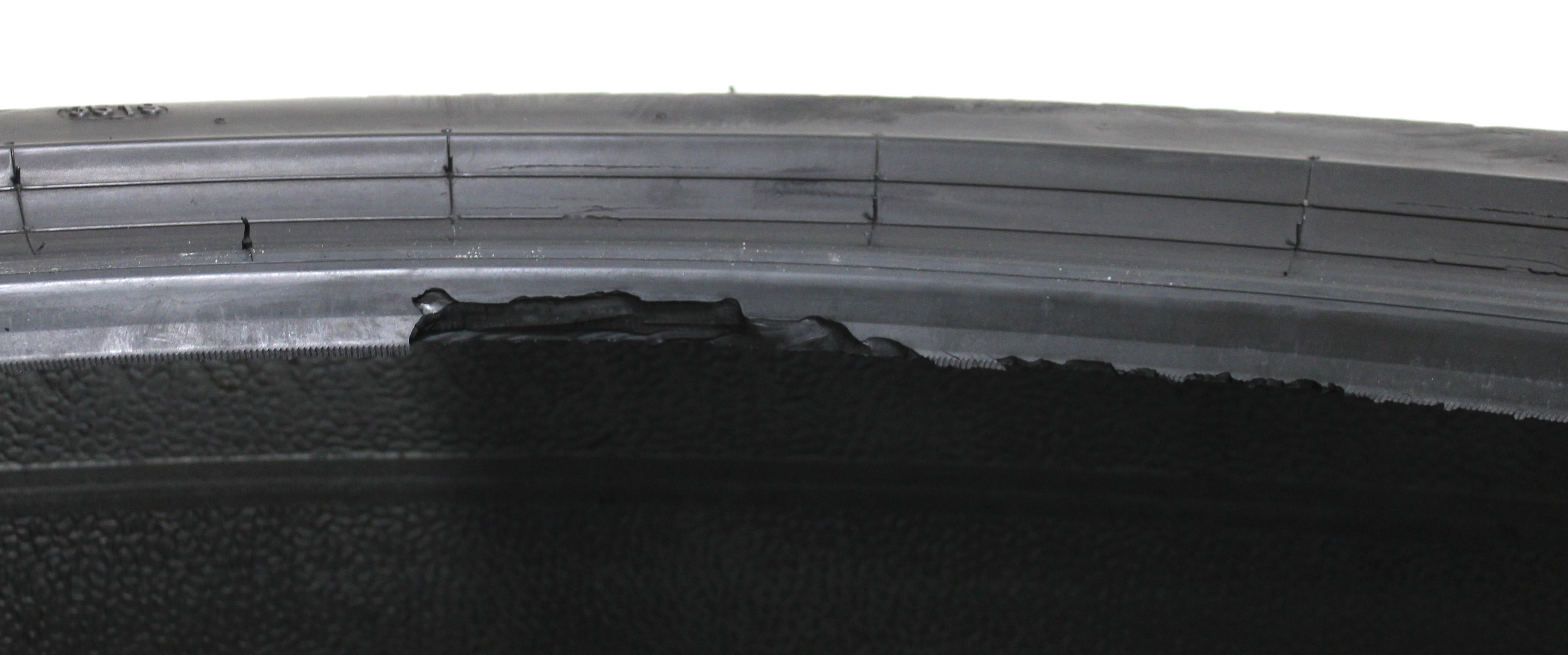 Observación Un neumático tiene una pequeña abrasión en la banda de protección de la llanta. Un neumático tiene una abrasión en el talón. (ver foto)