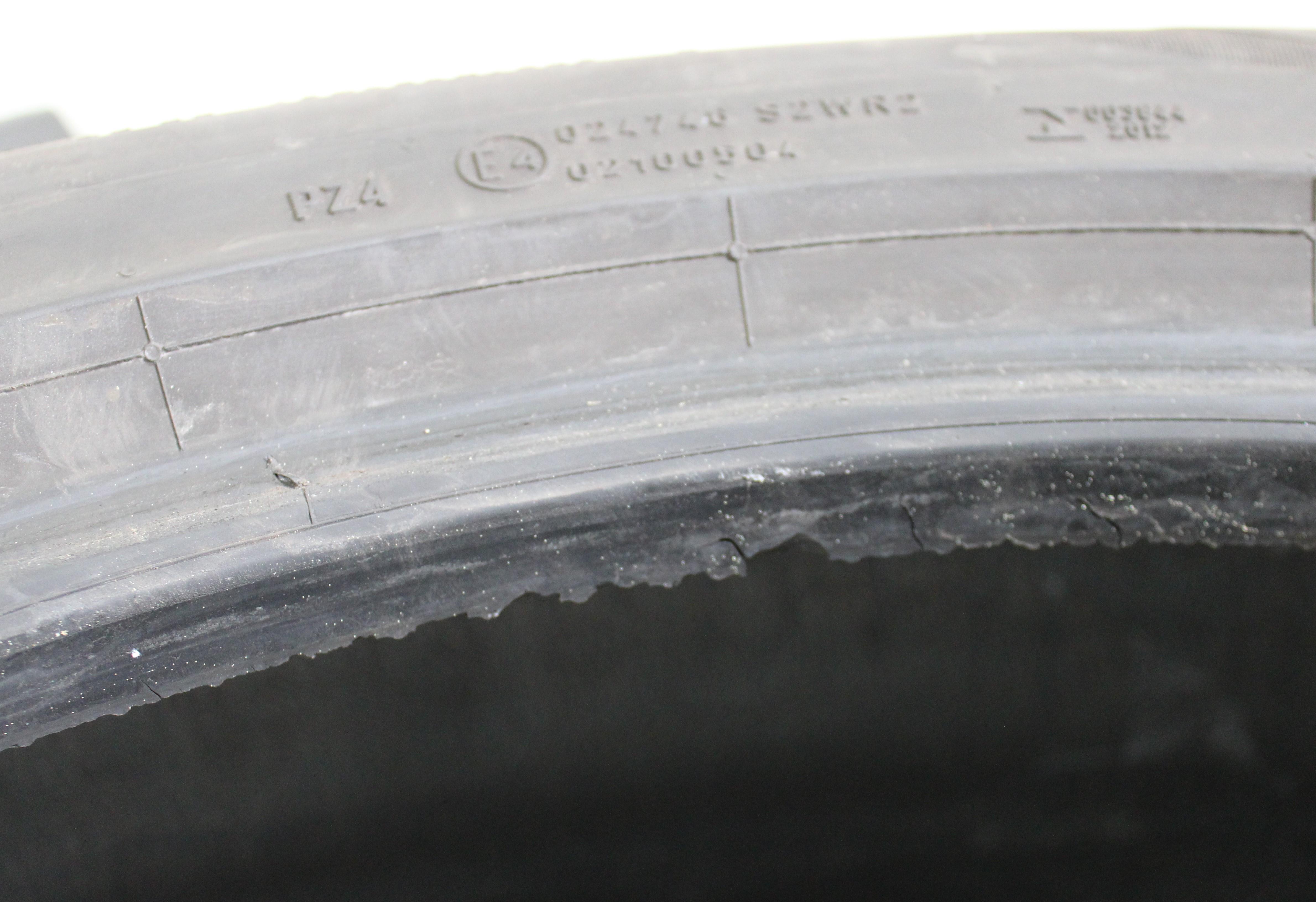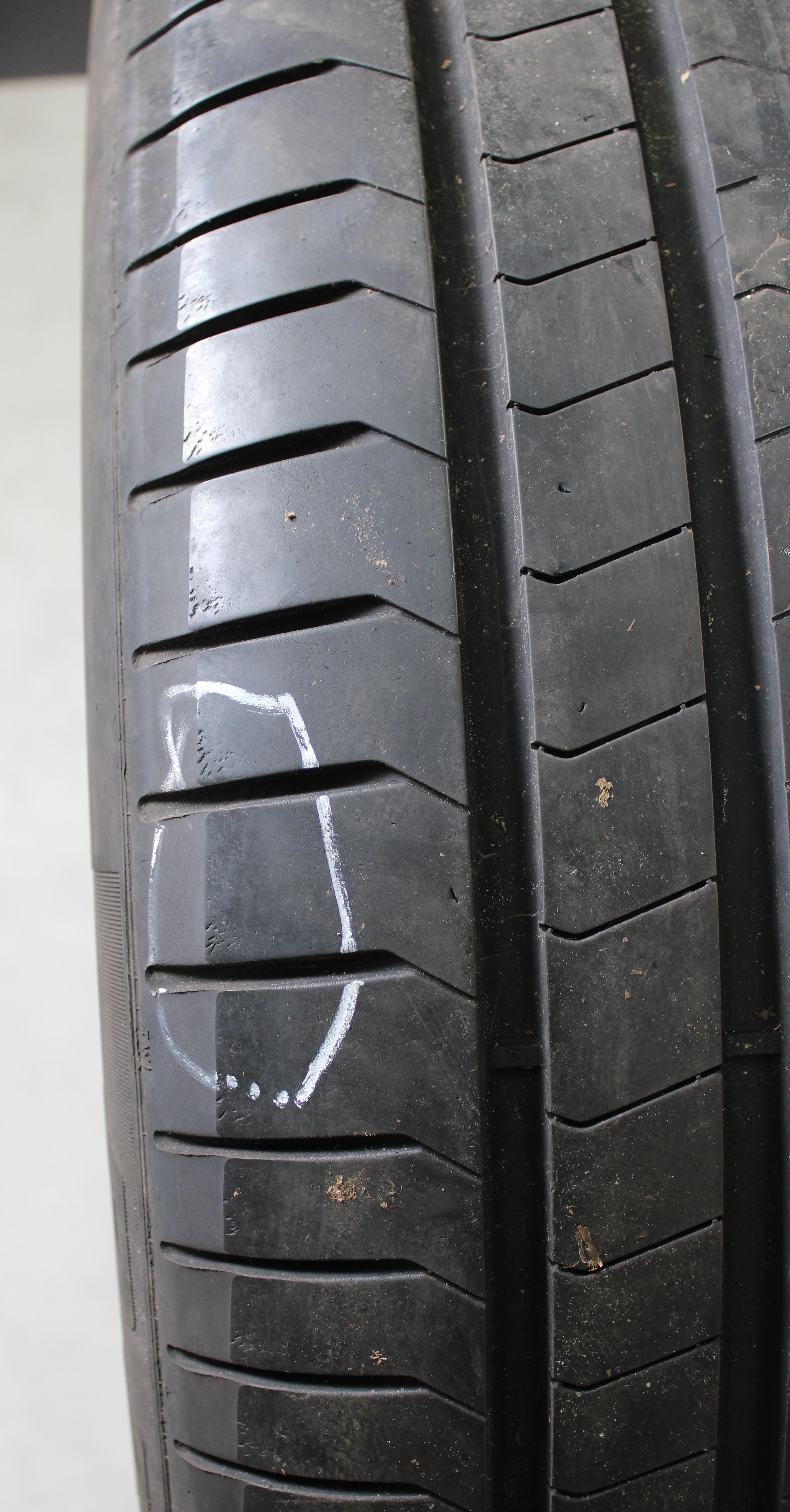Observación Un neumático tiene una pequeña abrasión en la banda de protección de la llanta. Un neumático tiene una abrasión en el talón. (ver foto)