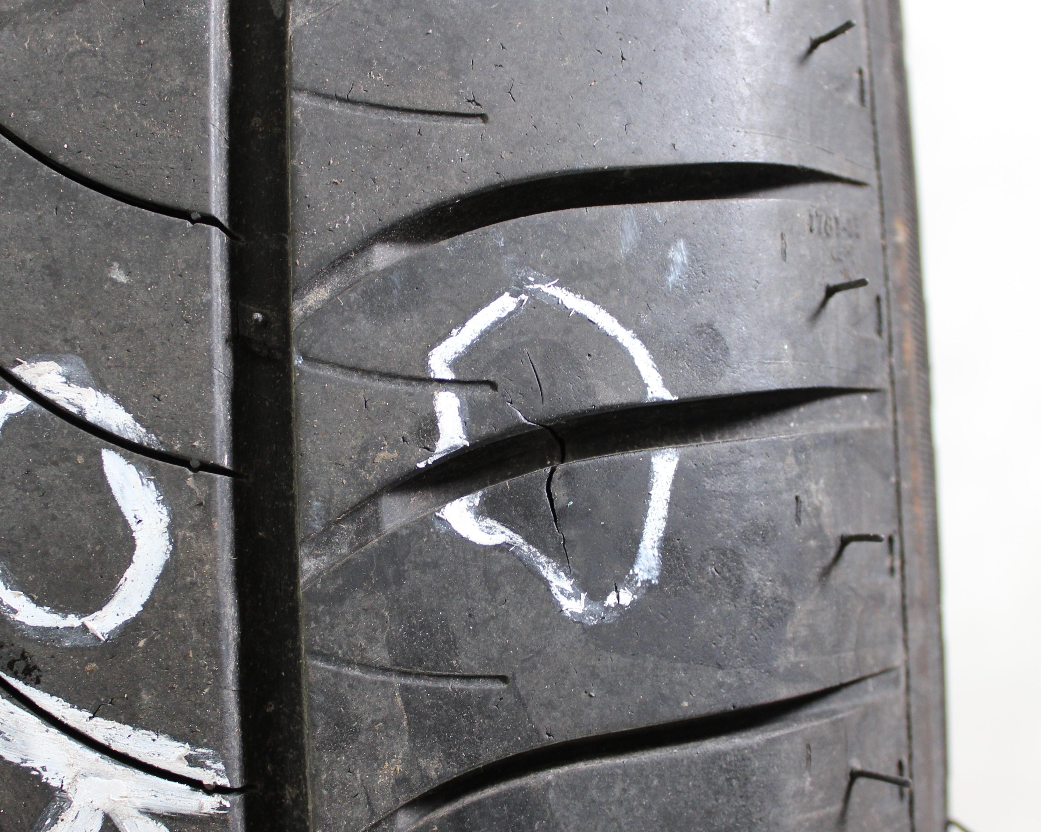 Observación Un neumático tiene una pequeña abrasión en la banda de protección de la llanta. Un neumático tiene una abrasión en la banda de rodadura. (ver foto)