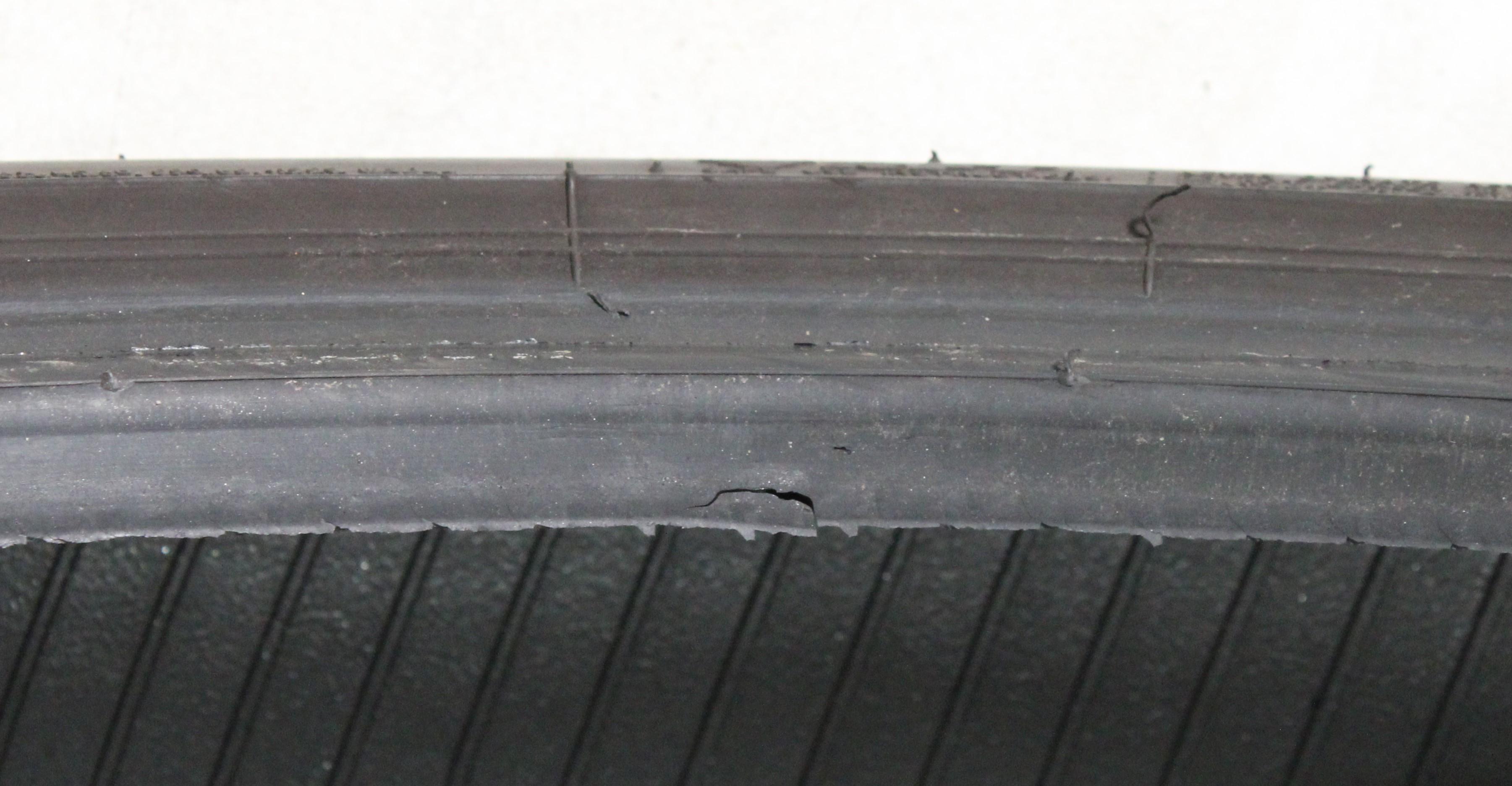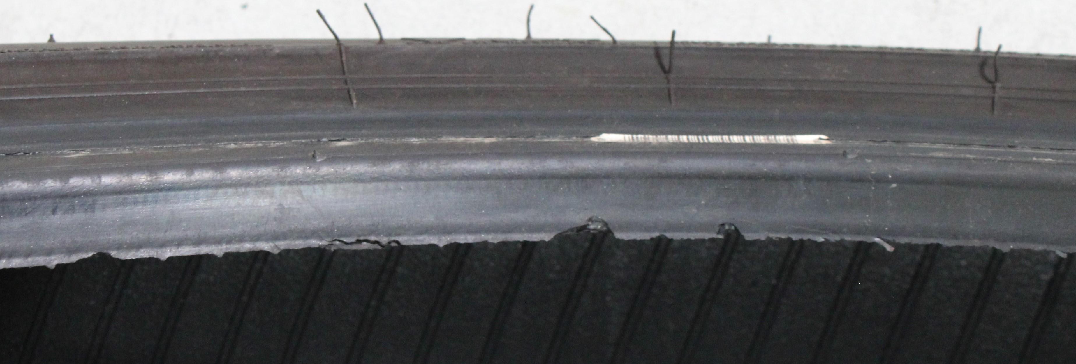 Observación Un neumático ha sido parcheado. Tres neumáticos tienen una abrasión en el flanco y el talón. (ver foto)
