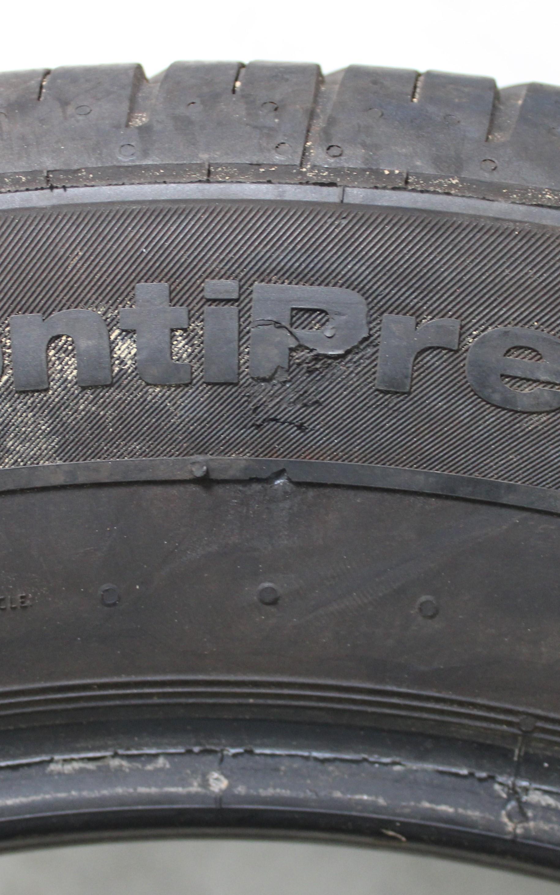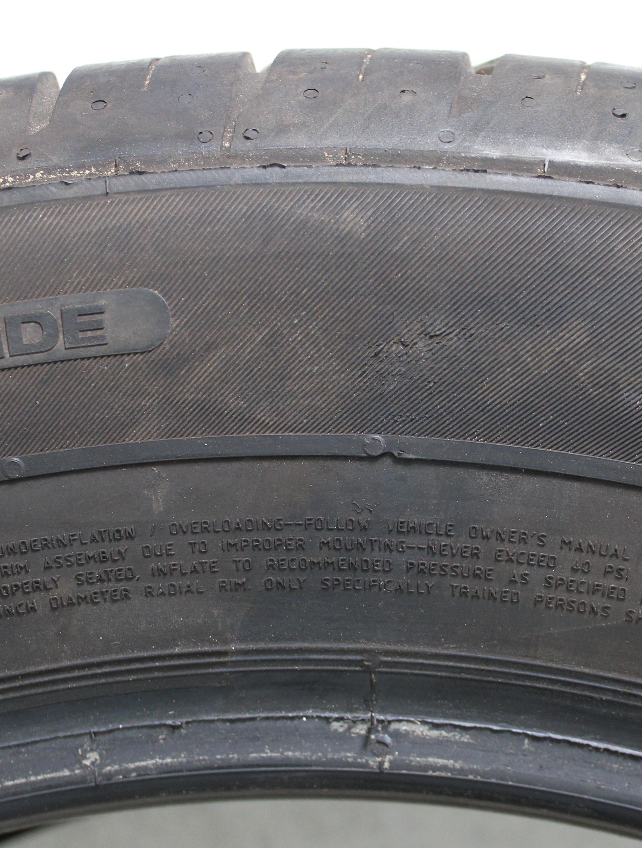 Observación Un neumático tiene una abrasión mínima en la banda de protección de la llanta. Un neumático tiene una abrasión mínima en el talón. (ver foto)